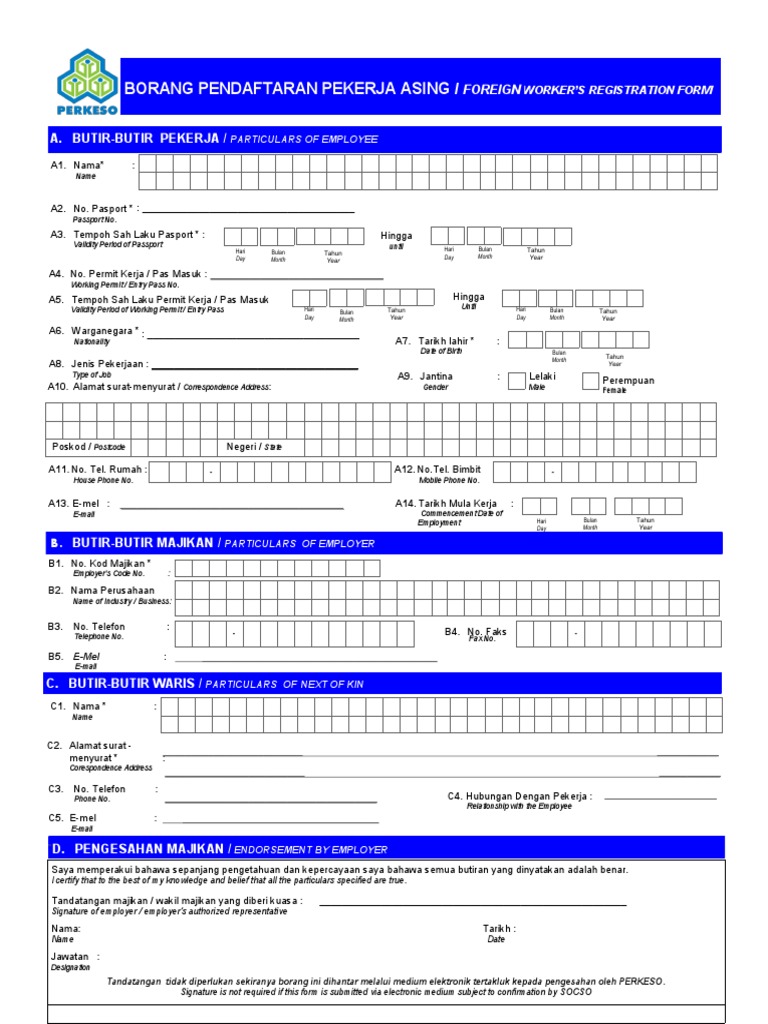 Https Www2 Anm Gov My Buletin Gfmas Arahan Operasi Lists Arahan 20operasi Attachments 202 Tatacara 20caruman 20socso Pdf from English english 简体中文 chinese simplified pendaftaran akaun perkeso panduan majikan. Borang pendaftaran pekerja asing seperti di lampiran a dalam pekeliling majikan bil.3 tahun 2018 dan boleh dimuat turun dengan melayari laman web perkeso www.perkeso.gov.my. Borang 2 borang pendaftaran pekerja. Here you may to know how to fill borang b. Get the free borang pendaftaran id portal perkeso form. Perkeso borang pendaftaran majkan borang 1 mp3 & mp4. Borang untuk majikan mengisi butiran pekerja baru. Apakah elaun mencari pekerjaan (emp)?