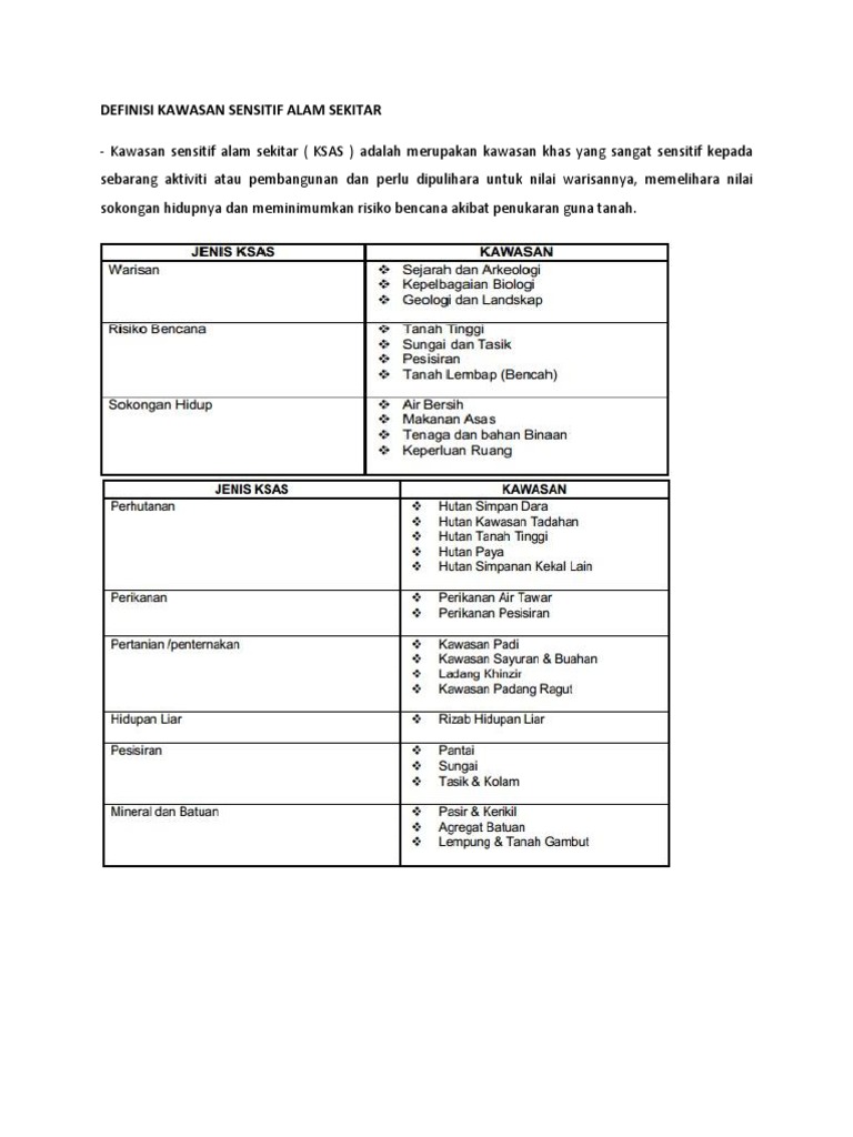 Facebook from lookaside.fbsbx.com 123 garis panduan perancangan pemuliharaan kawasan sensitif alam sekitar (ksas) kawasan pesisiran pantai rajah 6 contoh. What is the meaning of ksas abbreviation? Ksas stands for kawasan sensitif alam sekitar (malay: Antara hidupan yang sensitif dan merosot dalam air berasid adalah serangga, haiwan akuatik serta plankton, manakala katak dan kodok mengalami. Kawasan sensitif alam sekitar (malay: Contextual translation of definisi kawasan sensitif alam sekitar into english. Unit landskap yang berfungsi sebagai sistem. Alam sekitar meliputi beberapa komponen utama: