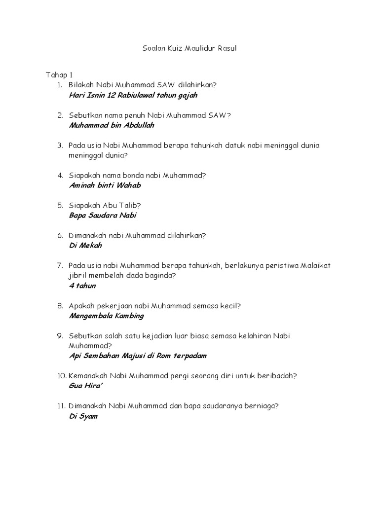 Soalan melibatkan pnp sirah tahun 1 dan tahun 2. Contoh soalan matematik tingkatan 1 pertengahan tahun. Soalan kuiz sempena maulidur rasul 1430h di masjid quba, taman wawasan, tawau. Kuiz maulidur rasul ini diadakan bagi menguji tahap pengetahuan para peserta mengenai sejarah hidup nabi muhammad saw bersempena memperingati hari kelahiran baginda pada 12 rabiulawal. Soalan dimuat turun lebih awal sehari di laman ini dan ditampal di lebuh maklumat pada hari berikutnya.